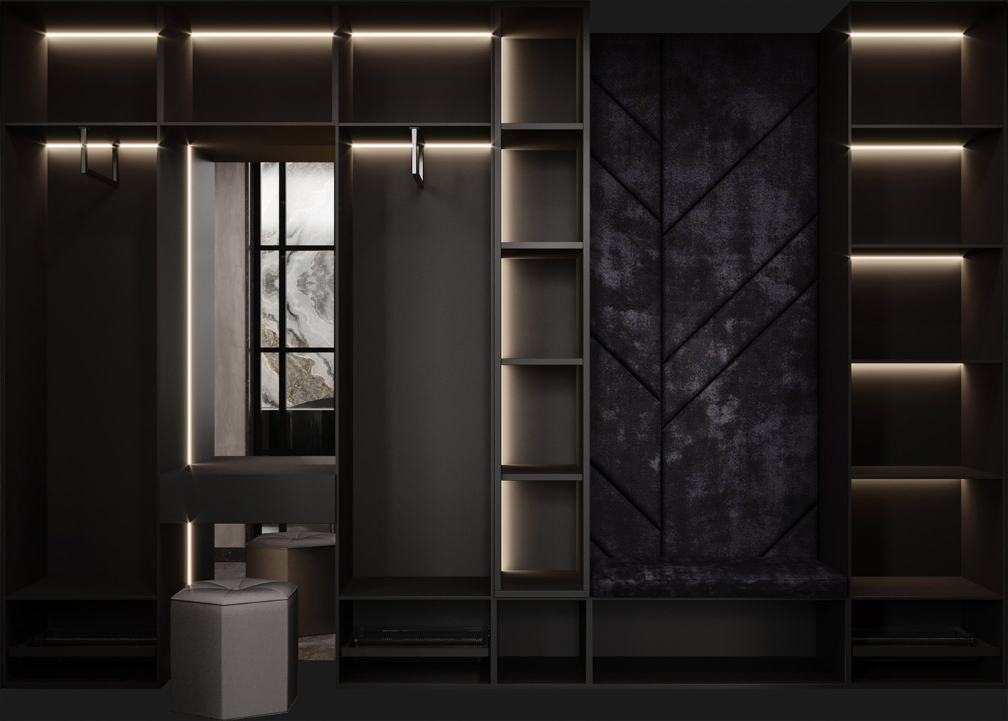 Обувницы бывают 2-х видов: открытые и закрытые. В прихожей мы чаще всего монтируем открытые конструкции. Такие модели обладают хорошей вентиляцией, и неприятный запах от обуви в них долго не застаивается.